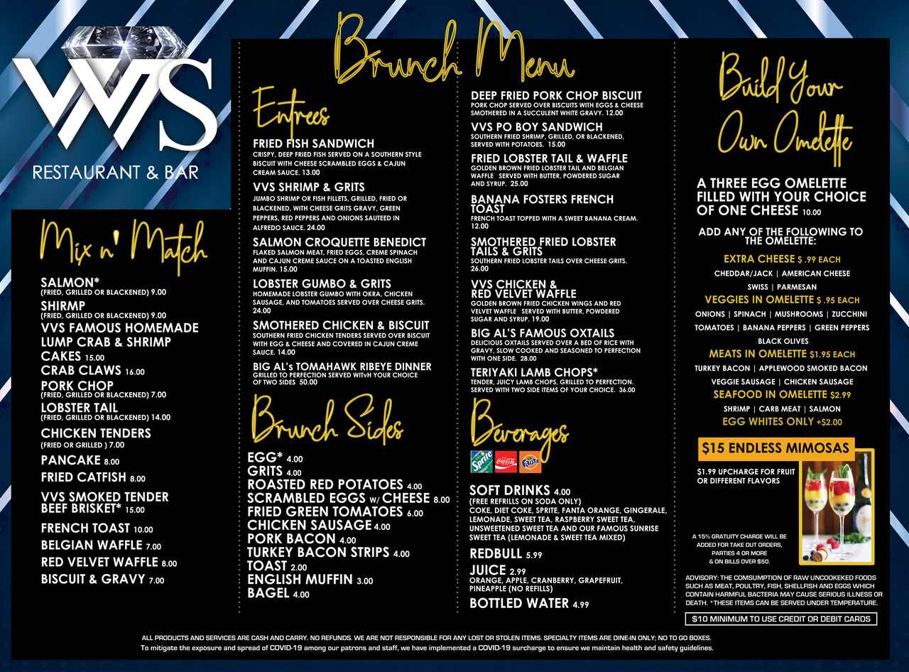 VVS Shrimp, Fried or Blackened, served on a bed of dirty rice with our VVS special sauce.